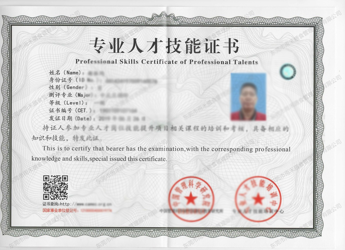 秦正友职业技能证书